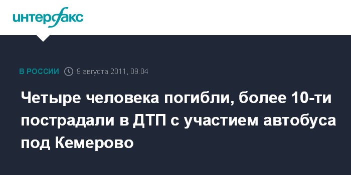 "Авария произошла в 7:50 МСК вторника в Топкинском районе Кемеровской области. Пассажирский автобус, двигавшийся по трассе, столкнулся с грузовым автомобилем. Четверо человек погибли, 11 получили ранения", - отметил представитель МЧС.
