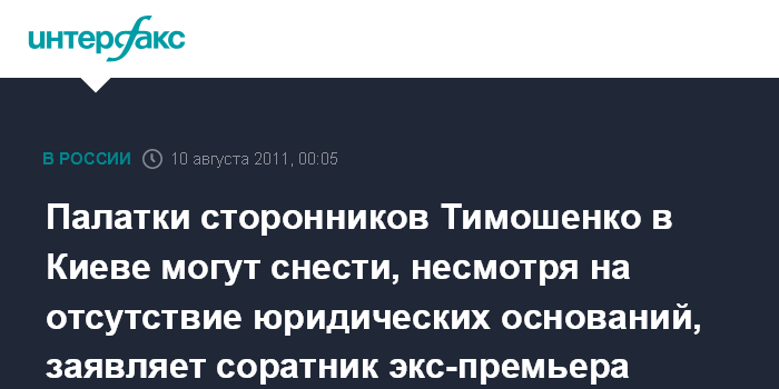 Палатки сторонников Тимошенко в Киеве могут снести, несмотря на отсутствие юридических оснований, заявляет соратник экс-премьера