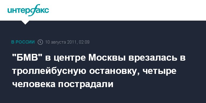 Москва. 10 августа. ИНТЕРФАКС - В центре Москвы произошло ДТП, в котором пострадали четыре человека.