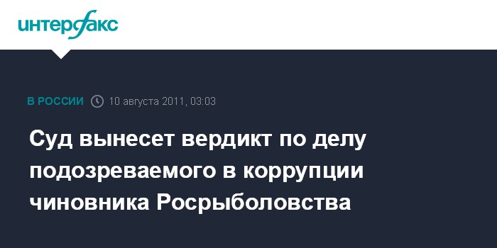 Суд вынесет вердикт по делу подозреваемого в коррупции чиновника Росрыболовства