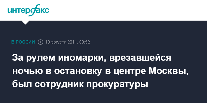За рулем иномарки, врезавшейся ночью в остановку в центре Москвы, был сотрудник прокуратуры