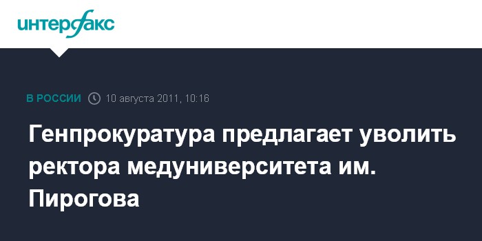 "По итогам проведенной проверки генеральная прокуратура РФ направила информацию министру здравоохранения и социального развития РФ с предложением рассмотреть вопрос об освобождении от занимаемой должности ректора РНИМУ им.Пирогова", - сказала Гриднева "Интерфаксу" в среду.