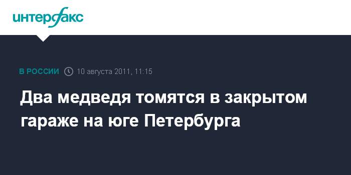 Санкт-Петербург. 10 августа. INTERFAX.RU - Жители Купчино - южного района Петербурга обнаружили в одном из гаражей запертыми за железными дверями двух бурых медведей.