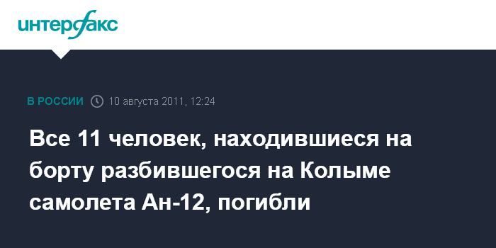 Все 11 человек, находившиеся на борту разбившегося на Колыме самолета Ан-12, погибли