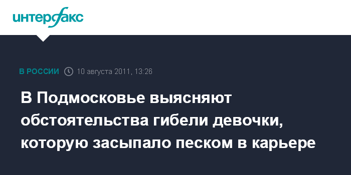 Москва. 10 августа. INTERFAX.RU - Доследственная проверка проводится по факту гибели в Подмосковье девочки, обнаруженной засыпанной песком, сообщила "Интерфаксу" в среду официальный представитель подмосковного следственного управления Ирина Гуменная.