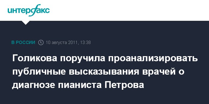 Голикова поручила проанализировать публичные высказывания врачей о диагнозе пианиста Петрова