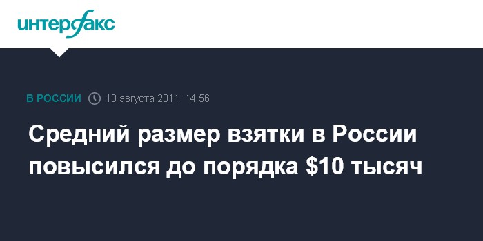 Средний размер взятки в России повысился до порядка $10 тысяч