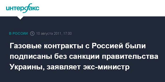 Газовые контракты с Россией были подписаны без санкции правительства Украины, заявляет экс-министр
