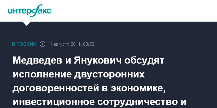 Медведев и Янукович обсудят исполнение двусторонних договоренностей в экономике, инвестиционное сотрудничество и тематику ЧФ