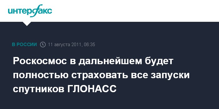 "Полное страхование должно применяться к серийному производству - к спутникам ГЛОНАСС, например. Представьте, были бы потерянные спутники ГЛОНАСС застрахованы на полную стоимость, - можно было бы получить страховую сумму и в течение какого-то времени восполнить потерю. Никаких секретов Роскосмос делать из этого не будет. И всю информацию о страховании планируется разместить в открытом доступе", - сказал глава Роскосмоса Владимир Поповкин в интервью "Коммерсанту", опубликованном в четверг.