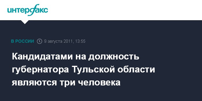 Кандидатами на должность губернатора Тульской области являются три человека