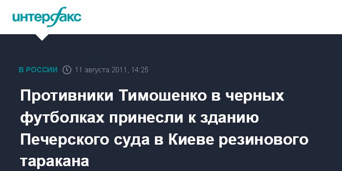 Противники Тимошенко в черных футболках принесли к зданию Печерского суда в Киеве резинового таракана