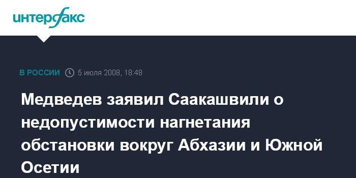 Медведев заявил Саакашвили о недопустимости нагнетания обстановки вокруг Абхазии и Южной Осетии