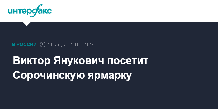 Кременчуг. 11 августа. INTERFAX.RU - На Национальной Сорочинской ярмарке, которая ежегодно проходит в селе Великие Сорочинцы Миргородского района Полтавской области, 17 августа ожидают приезд президента Украины Виктора Януковича, а также ряда иностранных гостей. Как сообщают организаторы мероприятия, хотя ярмарка будет работать с 16 по 21 августа, официальное открытие назначено именно на 17 августа.