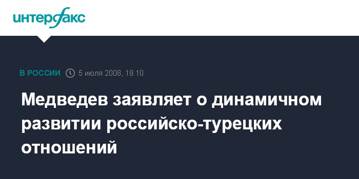 Астана. 5 июля. ИНТЕРФАКС - Президент РФ Дмитрий Медведев отметил динамичный характер российско-турецких отношений.