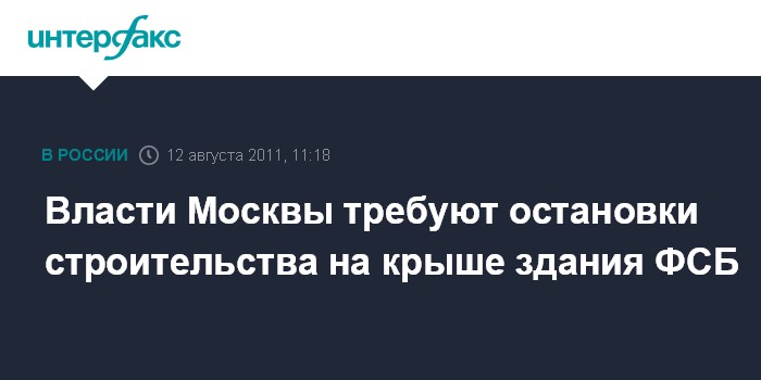 Власти Москвы требуют остановки строительства на крыше здания ФСБ