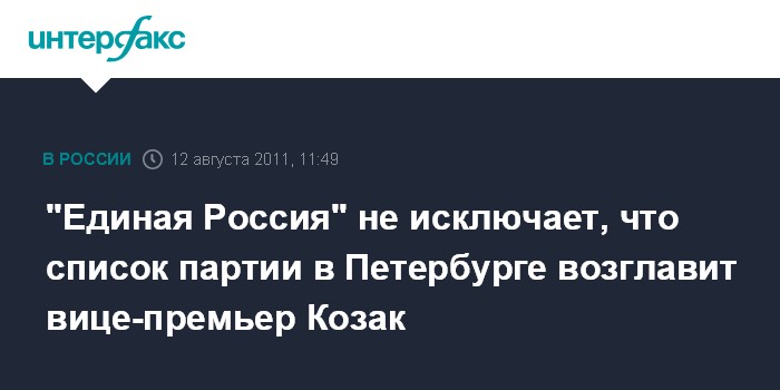 Москва. 12 августа. INTERFAX.RU - Вице-премьер Дмитрий Козак действительно может возглавить региональный список "Единой России" в Санкт-Петербурге на парламентских выборах, заявил руководитель центрального исполкома партии, депутат Госдумы Андрей Воробьев