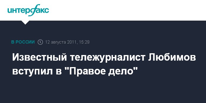 "11 августа решением выборного собрания регионального отделения всероссийской партии "Правое дело" в Москве Любимов избран членом регионального политсовета московского отделения партии", - сообщили "Интерфаксу" в пресс-службе партии.