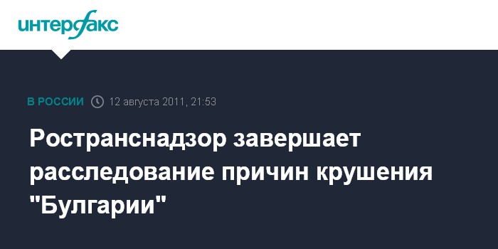 Москва. 12 августа. INTERFAX.RU - Комиссия Ространснадзора должна в субботу закончить работу по расследованию причин гибели теплохода "Булгария", сообщили "Интерфаксу" в ведомстве.