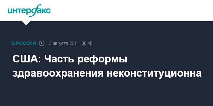 Лондон. 13 августа. ИНТЕРФАКС - Федеральный апелляционный суд США постановил, что часть реформы здравоохранения, которая была предложена администрацией Барака Обамы, не соответствует американской конституции.