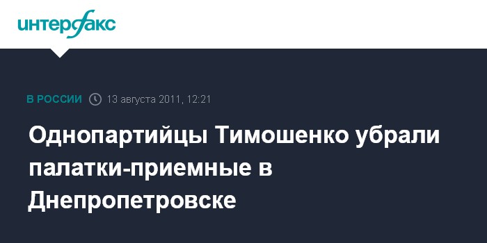 Днепропетровск. 13 августа. INTERFAX.RU - Члены городской организации партии "Батькивщина" в Днепропетровске демонтировали с площади Ленина 20 палаток, в которых была организована работа общественных приемных депутатов разных уровней. Таким образом, в ночь на субботу они выполнили решение Днепропетровского окружного административного суда.