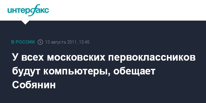 У всех московских первоклассников будут компьютеры, обещает Собянин