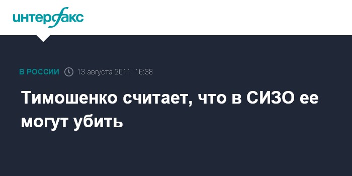Киев. 13 августа. INTERFAX.RU - Экс-премьер Украины, лидер партии "Батькивщина" Юлия Тимошенко боится за свою жизнь, сообщает интернет-издание EUobserver. "Подвергшаяся преследованию бывший премьер-министр Юлия Тимошенко сказала EUobserver, что нынешняя власть Украины настолько коррумпирована, что она боится, что ее убьют в тюрьме", - говорится в статье.