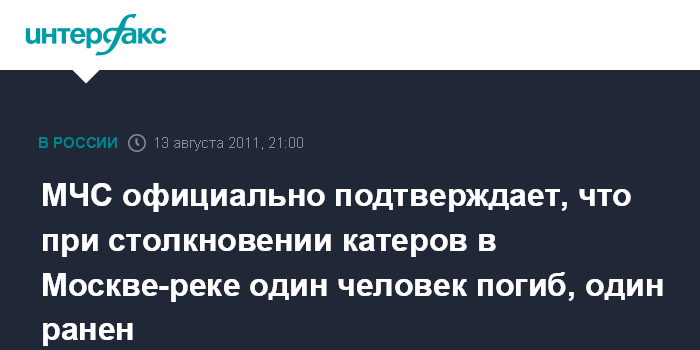 МЧС официально подтверждает, что при столкновении катеров в Москве-реке один человек погиб, один ранен