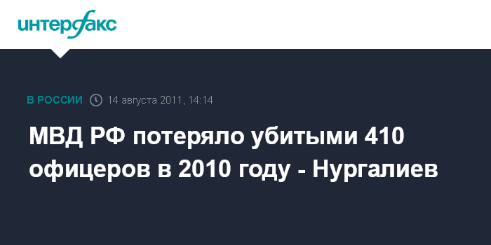 МВД РФ потеряло убитыми 410 офицеров в 2010 году - Нургалиев