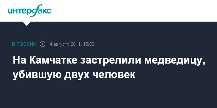 Петропавловск-Камчатский. 14 августа. INTERFAX.RU - Трех годовалых медвежат и медведицу, убившую накануне двух человек, застрелили охотоведы на Камчатке в воскресенье. "Зверя обнаружили в районе реки Паратунка в Елизовском районе, где и произошла трагедия. В субботу днем эта медведица задрала 19-летнюю девушку и ее отца", - сообщил агентству "Интерфакс-Дальний Восток" в воскресенье представитель агентства по охране и использованию животного мира в Камчатском крае.