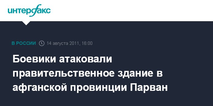 Вооруженные боевики, в том числе смертники, совершили нападение на здание, в котором располагается администрация губернатора провинции Парван. Перестрелка до сих пор продолжается. Боевики ворвались в правительственно учреждение, когда там проходило совещание с участием полицейских, представителей службы разведки и международных советников.