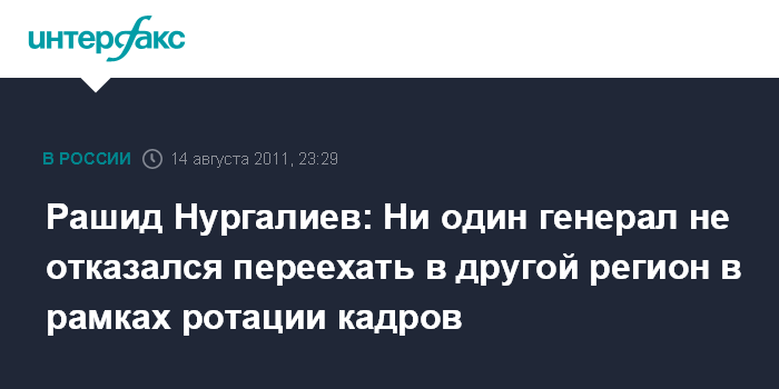 "Хочу сразу сказать, что ротация кадров является нормой и только в этом году у нас произошла ротация 75 руководителей первого и второго звена. И ни один из тех, кому предлагалось уехать в другой регион, не отказался", - сказал Р.Нургалиев на ведомственном совещании.