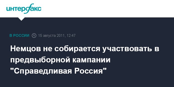Немцов не собирается участвовать в предвыборной кампании "Справедливая Россия"