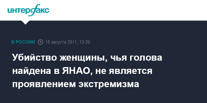 Убийство женщины, чья голова найдена в ЯНАО, не является проявлением экстремизма