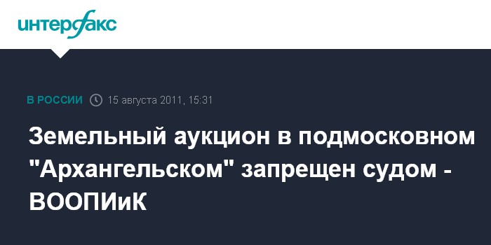Земельный аукцион в подмосковном "Архангельском" запрещен судом - ВООПИиК