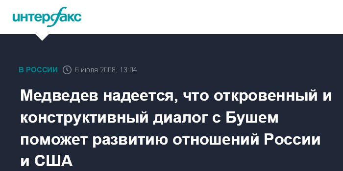 Медведев надеется, что откровенный и конструктивный диалог с Бушем поможет развитию отношений России и США