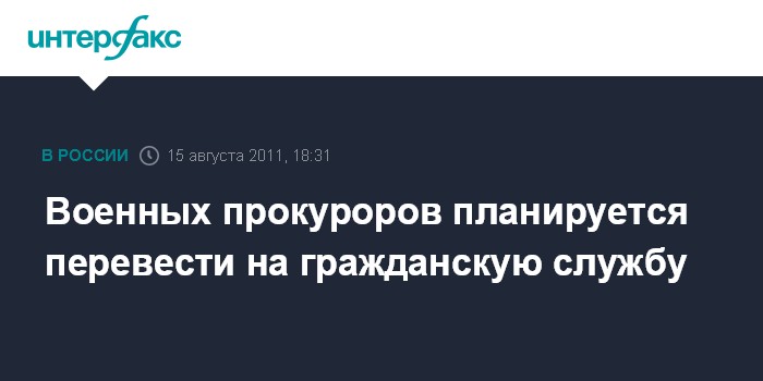 Москва. 15 августа. INTERFAX.RU - Статус военной прокуратуры в соответствии с предложениями, которые направлены в Совет безопасности РФ, планируется изменить, а сотрудников органов военной прокуратуры перевести с военной на гражданскую службу, сообщил "Интерфаксу-АВН" в понедельник источник в российских силовых структурах.