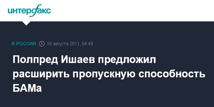 Пресс-служба полпреда сообщила во вторник, что, по мнению Ишаева, необходимость строительства второго пути связана с планируемым увеличением грузопотоков на Дальний Восток.