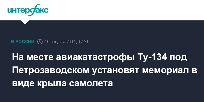 На месте авиакатастрофы Ту-134 под Петрозаводском установят мемориал в виде крыла самолета