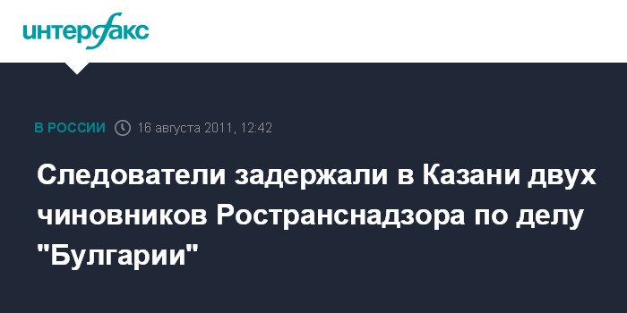 Москва. 16 августа. INTERFAX.RU - Два чиновника Ространснадзора стали фигурантами уголовного дела о крушении теплохода "Булгария" на Волге. "Следователи главного следственного управления СК РФ в рамках уголовного дела по факту крушения туристического теплохода "Булгария" задержали начальника Казанского линейного отдела Волжского управления государственного морского и речного надзора федеральной службы по надзору в сфере транспорта Ирека Тимергазеева и главного государственного инспектора этого же отдела Владислава Семенова", - сообщил "Интерфаксу" официальный представитель РФ Владимир Маркин.
