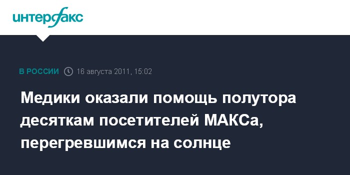 Жуковский. 16 августа. INTERFAX.RU - Более полутора десятков человек обратились за медицинской помощью на авиасалоне МАКС-2011 в подмосковном Жуковском, сообщили "Интерфаксу" в Центре медицины катастроф, чьи сотрудники дежурящей на мероприятии.