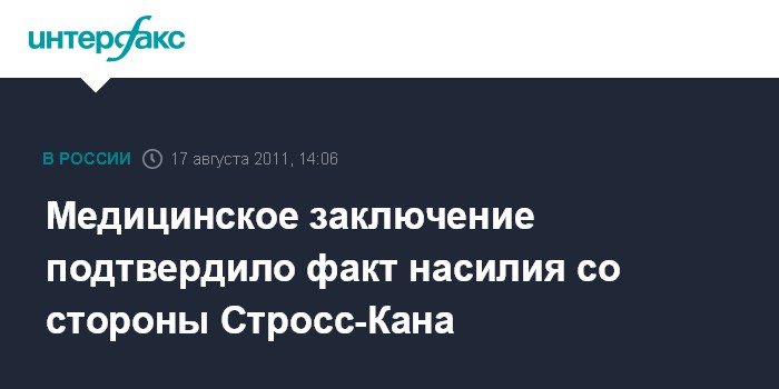 Вашингтон. 17 августа. INTERFAX.RU - Французскому изданию L'Express удалось получить медицинское заключение горничной нью-йоркского отеля "Софитель" Нафиссату Диалло из больницы, в которую она обратилась сразу после предполагаемого нападения на нее бывшего главы МВФ Доминика Стросс-Кана.