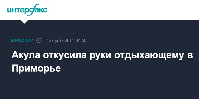 Владивосток. 17 августа. INTERFAX.RU - Мужчина стал жертвой нападения акулы на побережье Приморского края, с серьезными травмами пострадавший госпитализирован.
