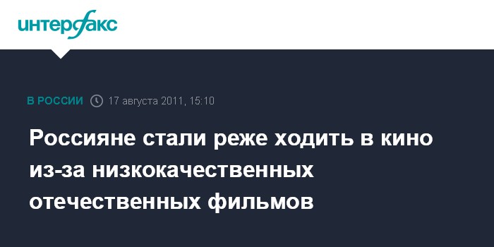 Спад посещаемости спровоцирован российскими картинами, полагает Movie Research, которая подсчитала, что по сравнению с первой половиной 2010 года отечественные фильмы стали на 31% менее посещаемыми, то есть потеряли почти треть своих зрителей.
