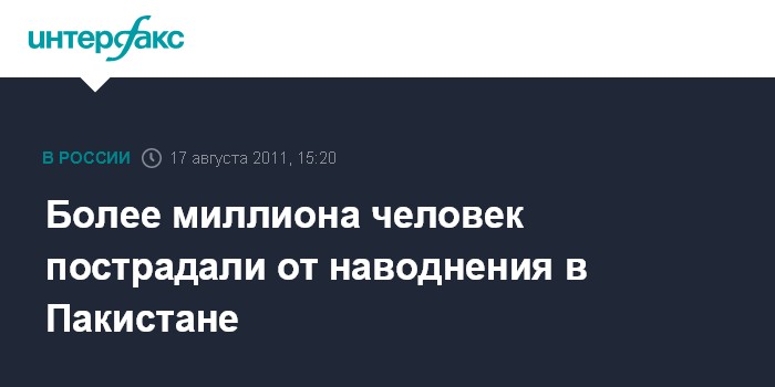 Вашингтон. 17 августа. ИНТЕРФАКС - Не менее 25 человек погибли и более 1 млн жителей Пакистана были вынуждены покинуть свои дома в связи с наводнением на юге страны, сообщает в среду агентство Bloomberg.