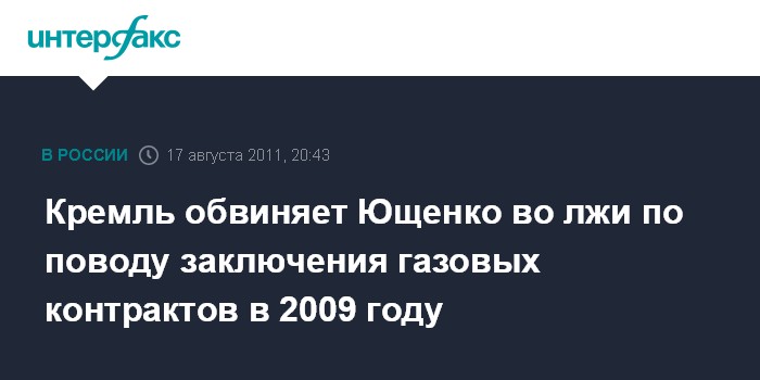 Кремль обвиняет Ющенко во лжи по поводу заключения газовых контрактов в 2009 году