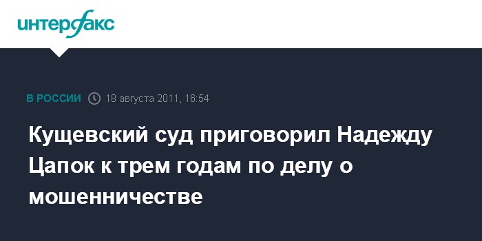 Кущевский суд приговорил Надежду Цапок к трем годам по делу о мошенничестве