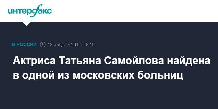 Актриса Татьяна Самойлова найдена в одной из московских больниц