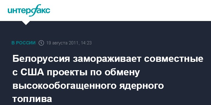 Белоруссия замораживает совместные с США проекты по обмену высокообогащенного ядерного топлива