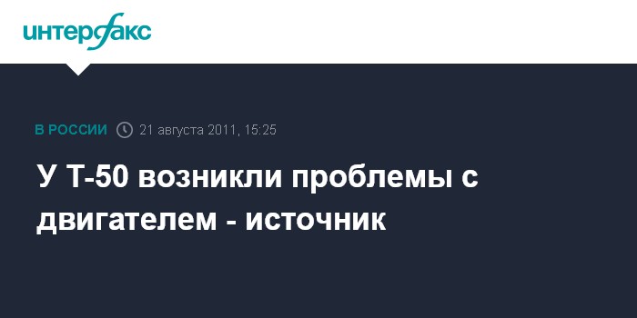 Москва. 21 августа. INTERFAX.RU - Демонстрационный полет истребителя пятого поколения на закрытии авиасалона МАКС-2011 не состоялся из-за проблем с двигателем самолета. "Во время взлета, по предварительным данным, произошел помпаж двигателя. Летчик-испытатель Сергей Богдан принял решение прекратить взлет. Самолет произвел экстренное торможение и остановился в пределах взлетно-посадочной полосы. Ни летчик, ни самолет не пострадали", - сообщил "Интерфаксу-АВН" источник в авиапроме.
